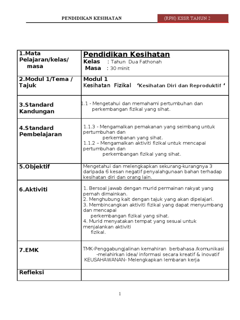 RANCANGAN PENGAJARAN HARIAN PENDIDIKAN KESIHATAN TAHUN 5 Tarikh Kelas Masa Modul Tajuk Standard Kandungan Standard Pembelajaran Objektif Pembelajaran Aktiviti EMK BBM Penilaian PP KESIHATAN MENTAL EMOSI DAN SOSIAL K. Dapatkan Bahan PAK21 Pendidikan Abad Ke-21 Hanya DISINI. Berikut merupakan koleksi rph Pendidikan Kesihatan tahun 5.